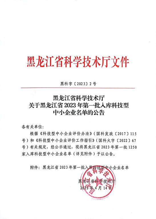 黑龍江省2023年第1批入庫科技型中小企業名單公告正文.jpg PICTURE